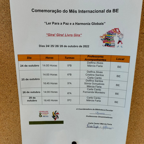 No âmbito do Mês Internacional das Bibliotecas Escolares, a nossa Escola realizou a atividade "Gira! Gira! Livro Gira!", dinamizada pelas Professoras Carla Canto e Márcia Faria.